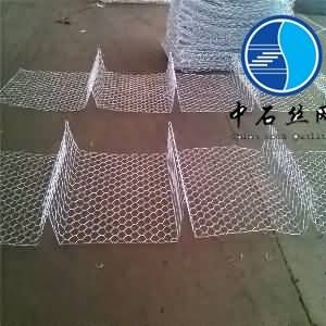 5%鋅鋁格賓網(wǎng)是采用5%鋁鋅合金鋼絲為原料,再以機(jī)械編織扭轉(zhuǎn)三圈成六角形網(wǎng)目,按設(shè)計(jì)要求把網(wǎng)片裁剪、組裝成蜂巢格網(wǎng)箱體,箱體內(nèi)填滿塊石等填充材料后,用作堤防、河岸、路基的防護(hù)工程的石籠產(chǎn)品。
